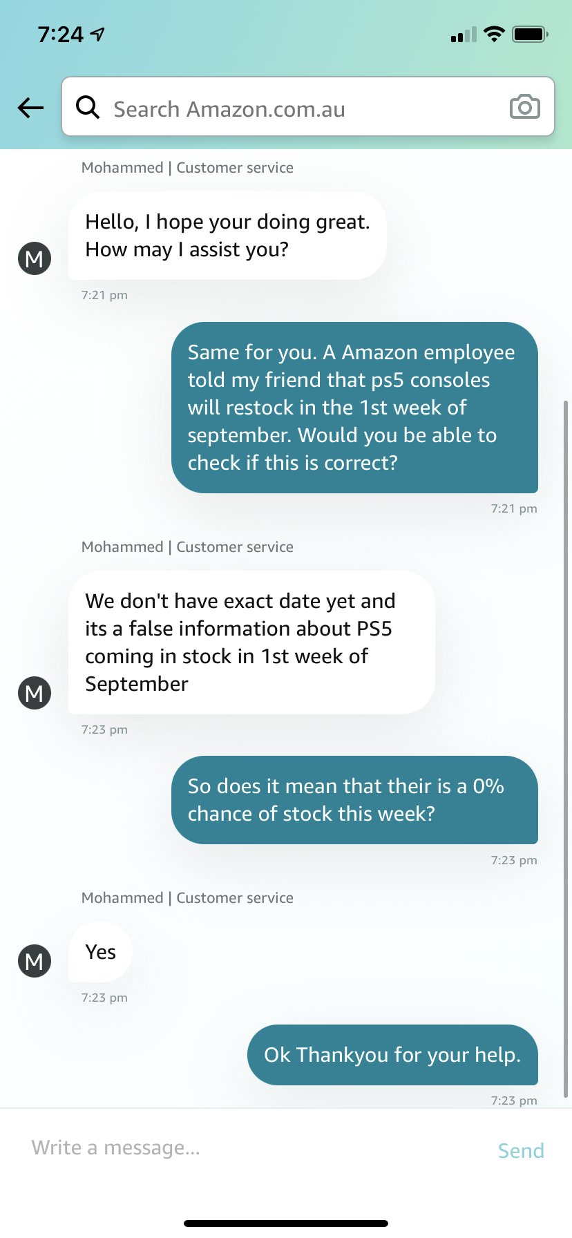 Ps5 Stock Alerts Australia On Twitter Update The Amazon Drop Soon Is Uncertain If You View This Support Query They Believe It Won T Be First Week Of September However Soon Could Be