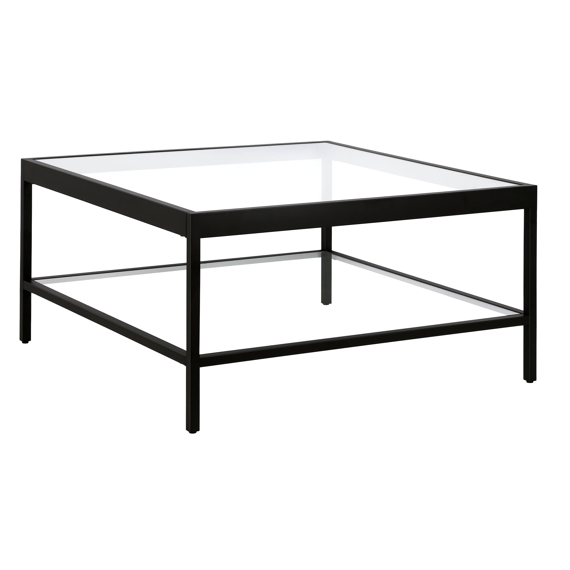 Meyer Cross Hera 32 In Blackened Bronze Medium Square Glass Coffee Table With Shelf Ct0453 The Home Depot